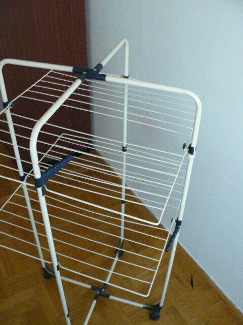 Do sprzedania uzywana suszarka na ubrania widoczna na zdjeciach.Wymiary po rozlozeniu 68 cm x 68 cm,wysokosc 145 cm.