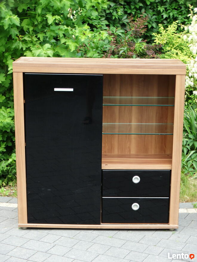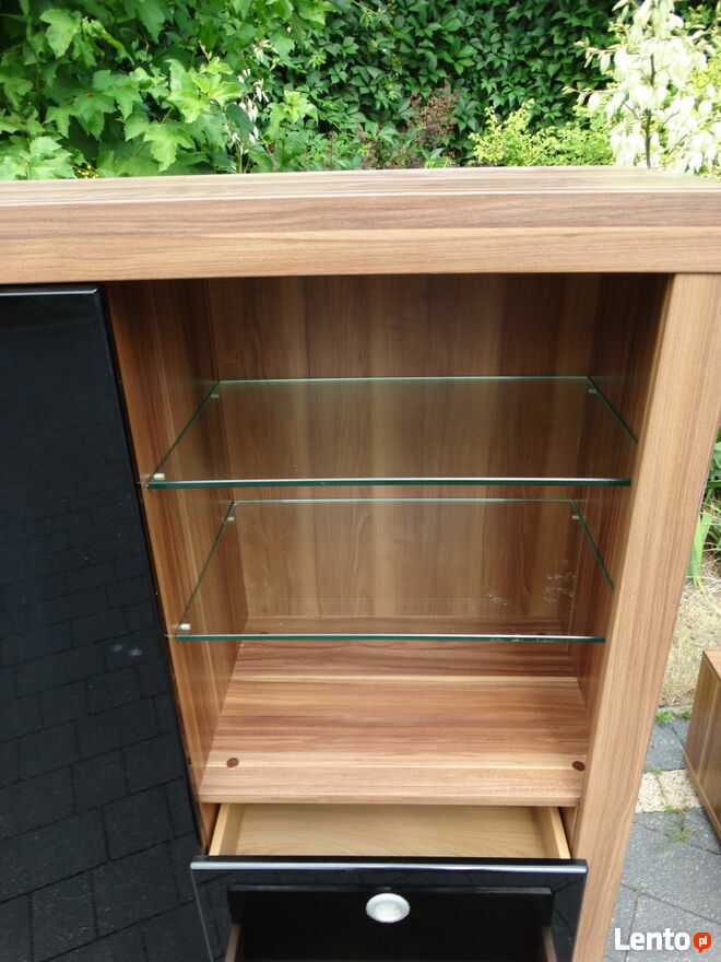 Bardzo elegancka szafka, komoda z przesuwanymi czarnymi drzwiami. Po lewej stronie 4 półki po prawej 3 półki w tym dwie szklane i dwie szuflady. Mebel bardzo mało używany w bardzo dobrym stanie - przywieziono w zachodniej granicy. Posiadamy do tego zestawu jeszcze inne, które są wystawione w innych ogłoszeniach. Zapraszamy do obejrzenia sprawdzenia i oczywiście zakupu. Zapraszamy.