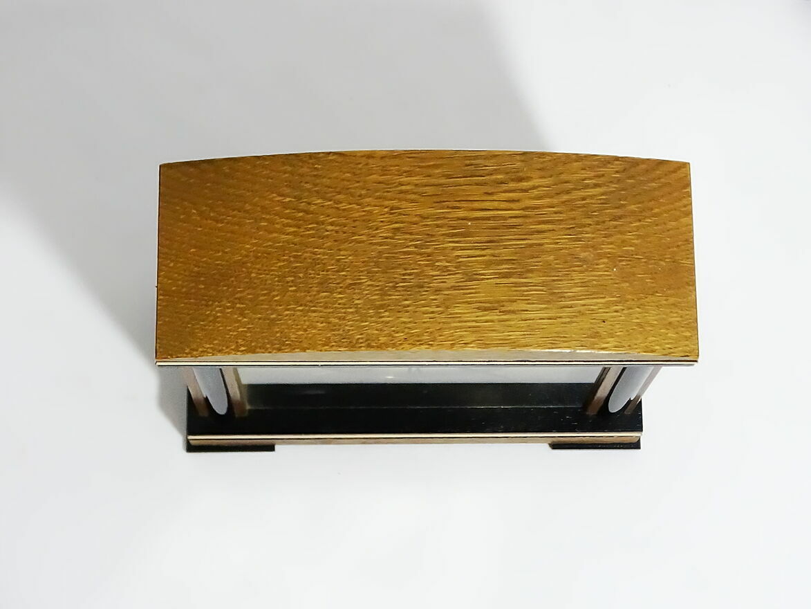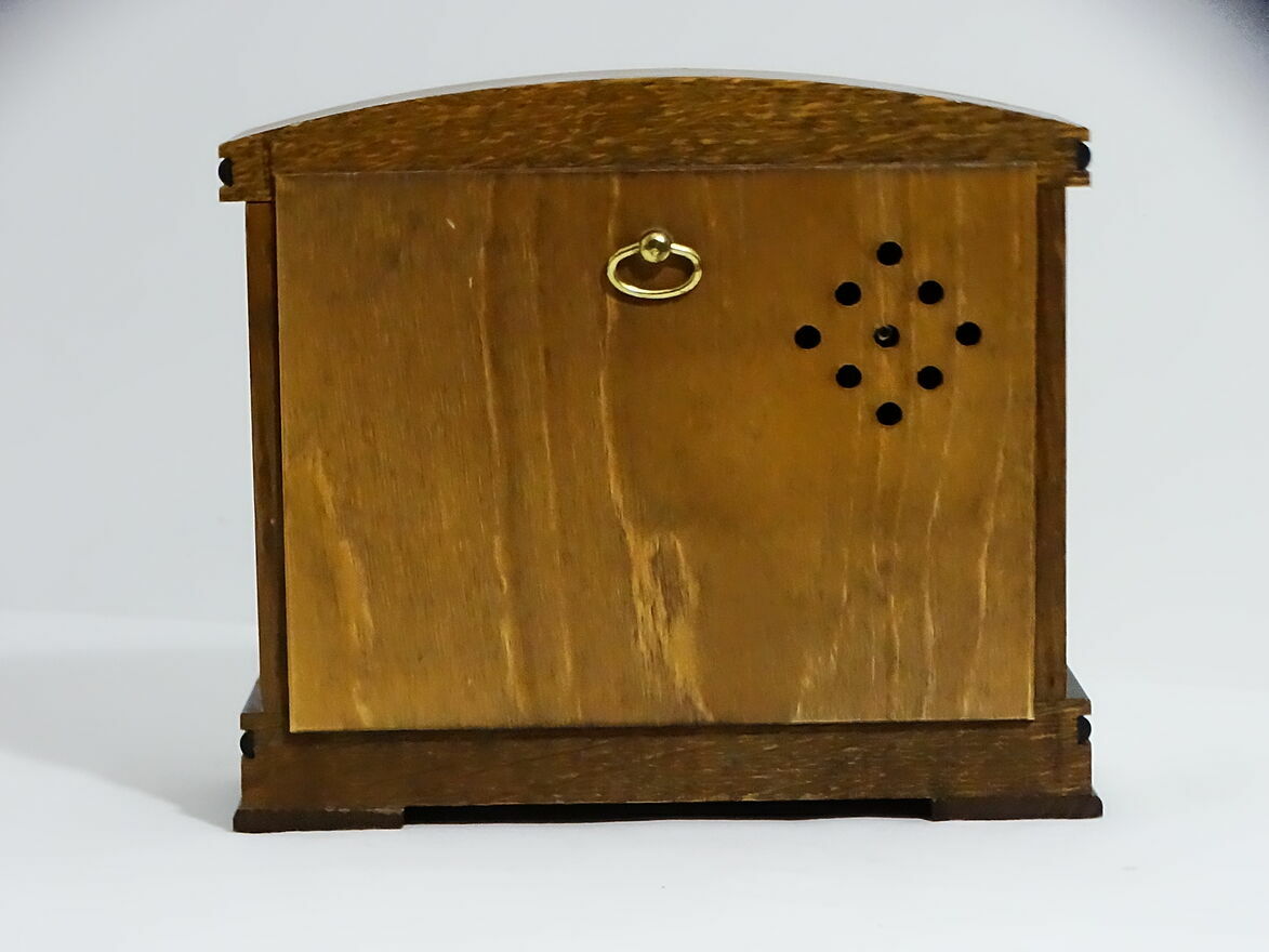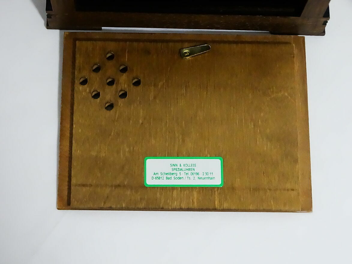 Elektroniczny zegar radiowy SINN ROCC-711, umieszczonym w drewnianej obudowie z klasyczną tarczą analogową, oraz jego wnętrzem technicznym z zasilaniem bateryjnym i głośnikiem. To rzadki przykład połączenia stylu retro z technologią synchronizacji czasu DCF77. Oto pełne zestawienie: