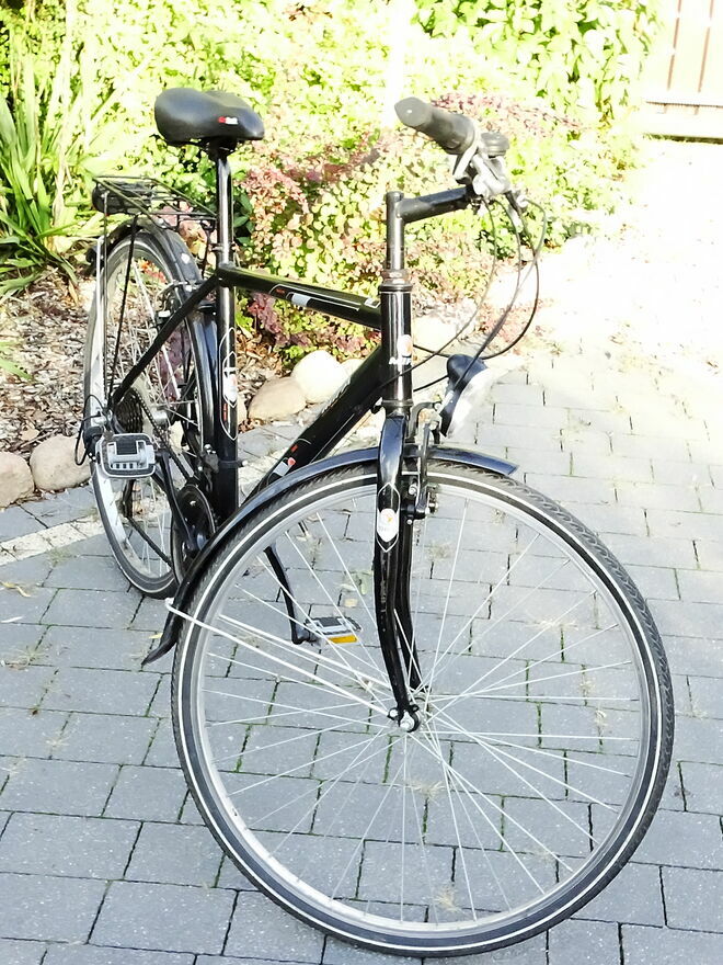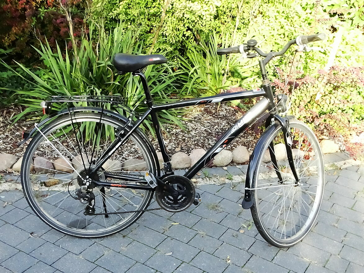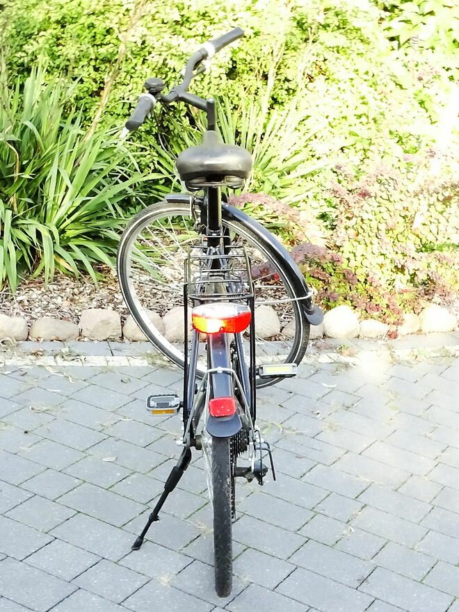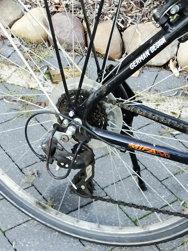 Klasyczny niemiecki rower miejski MIFA z prostą ramą, bagażnikiem i podpórką/stopką.Rower używany w bardzo dobrym stanie wizualnym co widać na zamieszczonych zdjęciach jak również w bardzo dobrym stanie technicznym - po serwisie i przeglądzie. Wszystko działa jak należy 100% sprawny. Rower na wzrost rowerzysty ok. 175–185 cm.