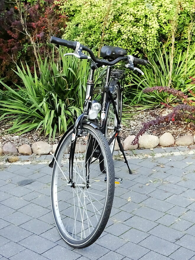 Koła: 28 cali, wieloszprychowe, typowe dla rowerów miejskich