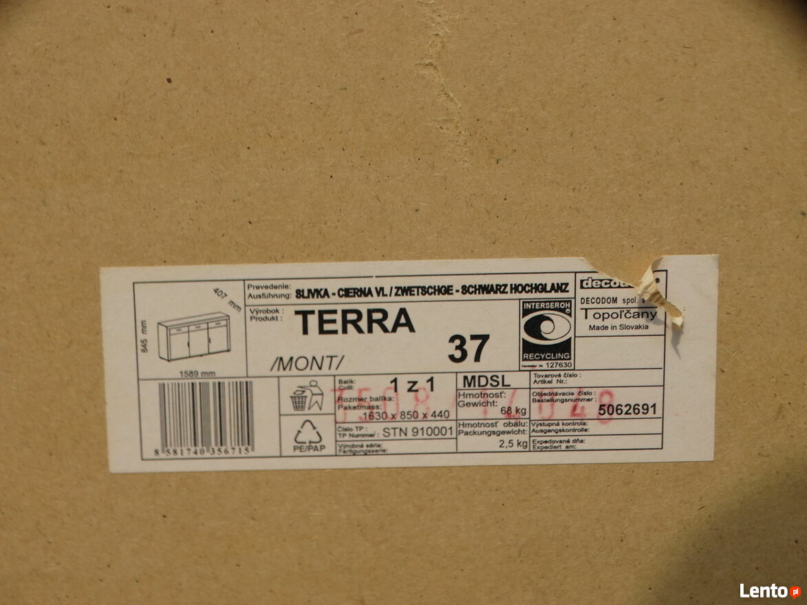 Komoda - 3 szuflady 6 półek Terra 37Komoda bardzo mało używana w bardzo dobrym stanie co widać na zamieszczonych zamieszczonych zdjęciach do dalszego długiego używania oraz ozdabiania wnętrza. Do komody posiadamy inne elementy tego zestawu, które można zakupić razem lub oddzielnie a są widoczne na ostatnich zdjęciach. Zapraszamy do obejrzenia sprawdzenia i oczywiście zakupu. Zapraszamy. Zestaw przywieziony z zachodniej granicy. Więcej informacji na zdjęciach.