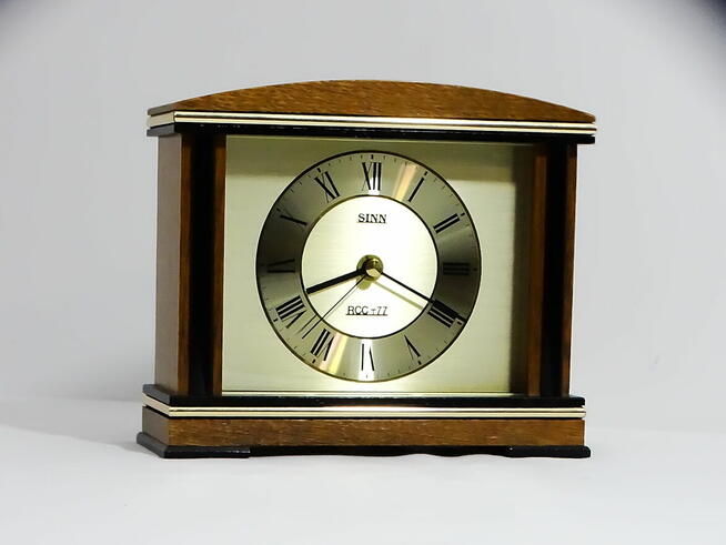 Elektroniczny zegar sterowany radiowo SINN ROCC-71E w kolorze złotym, szampańskim Zegar bardzo mało używany w bardzo ...