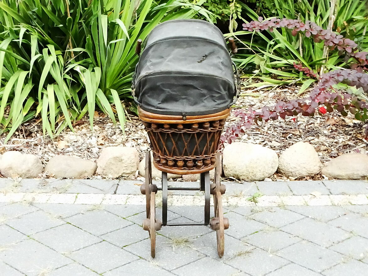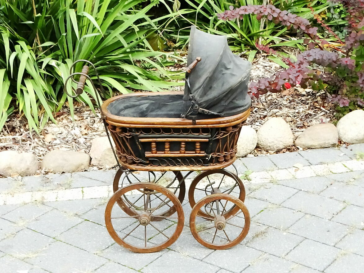 Wózki z wikliny i metalu były symbolem statusu społecznego i elegancji — używane przez rodziny mieszczańskie