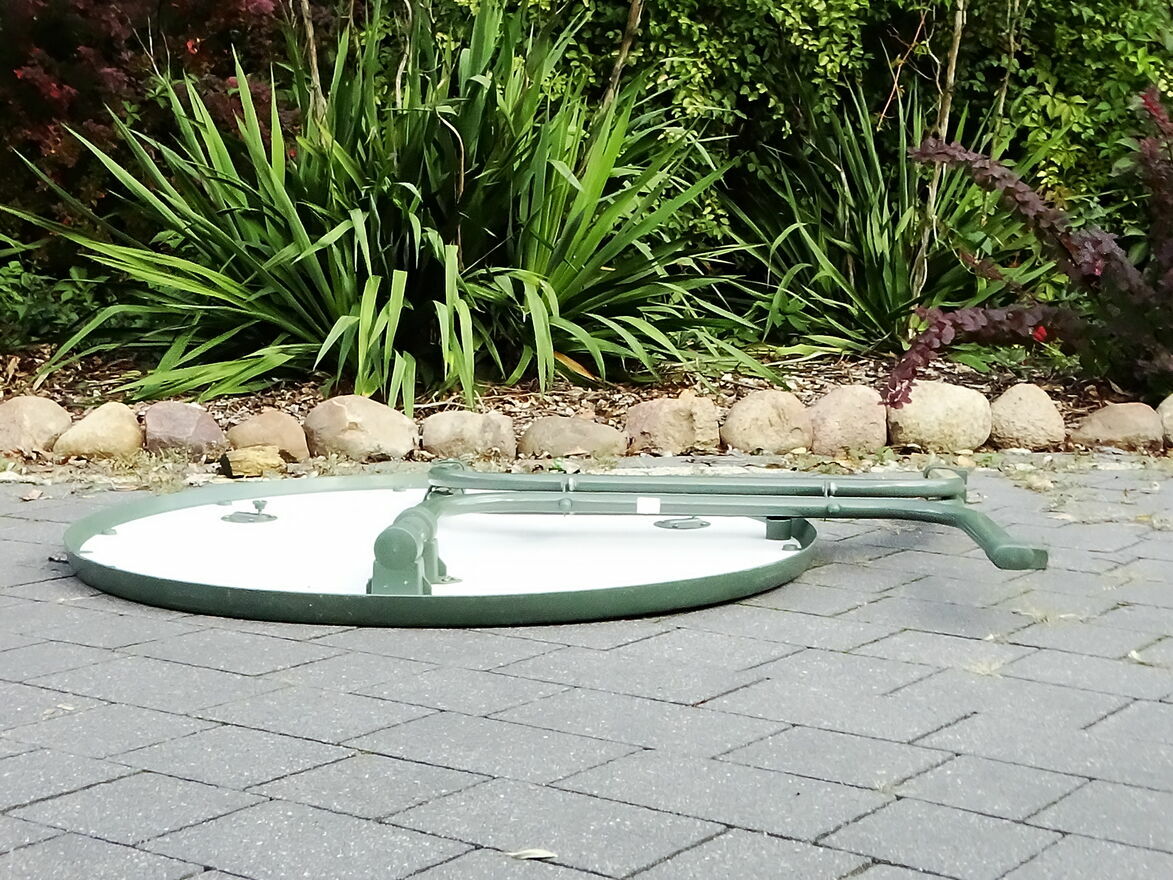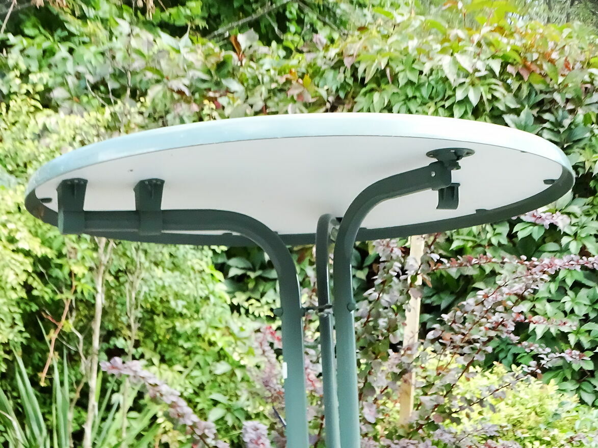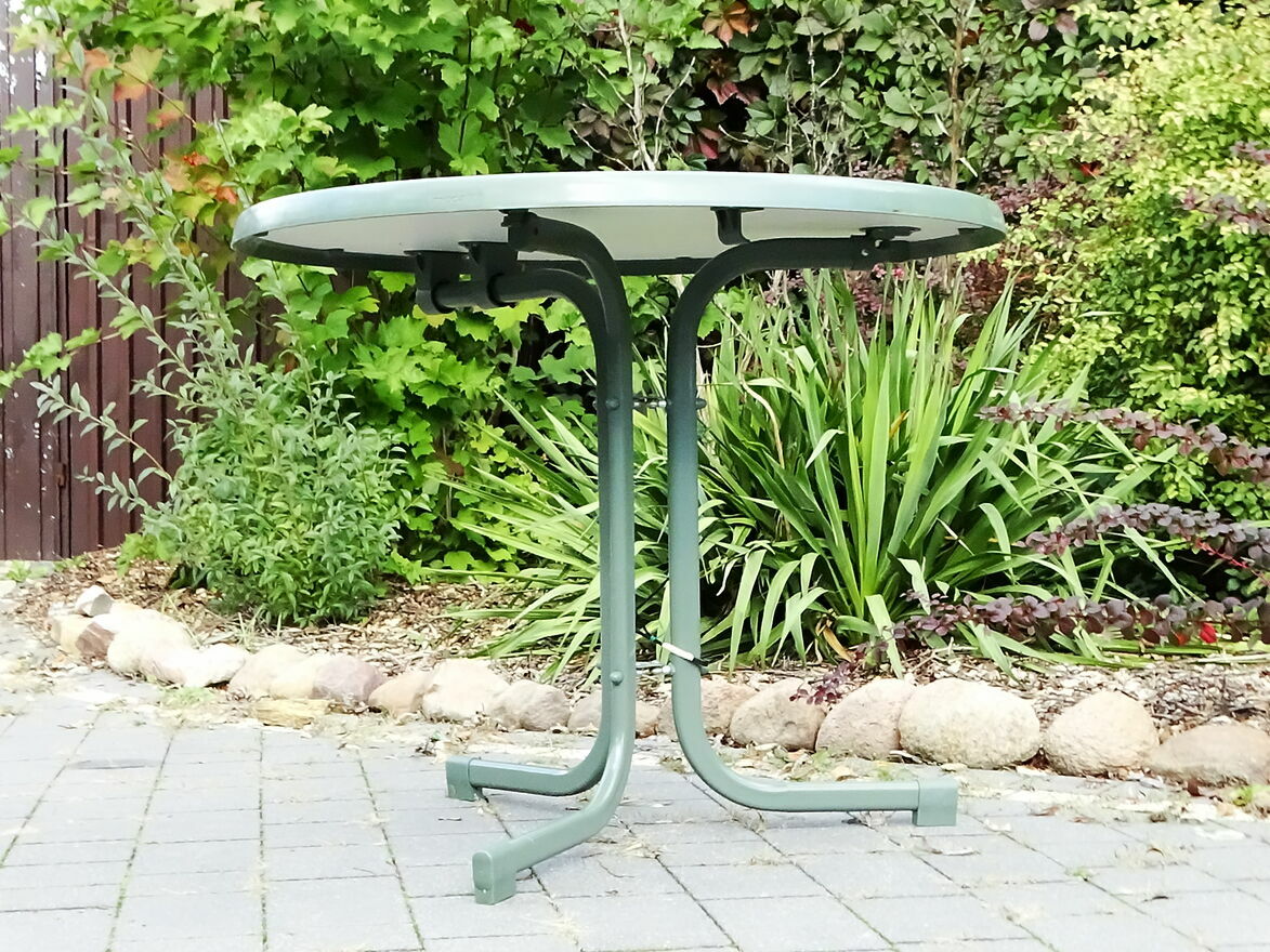 Okrągły stół ogrodowy składany, z blatem o średnicy 84 cm i wysokości 71 cm