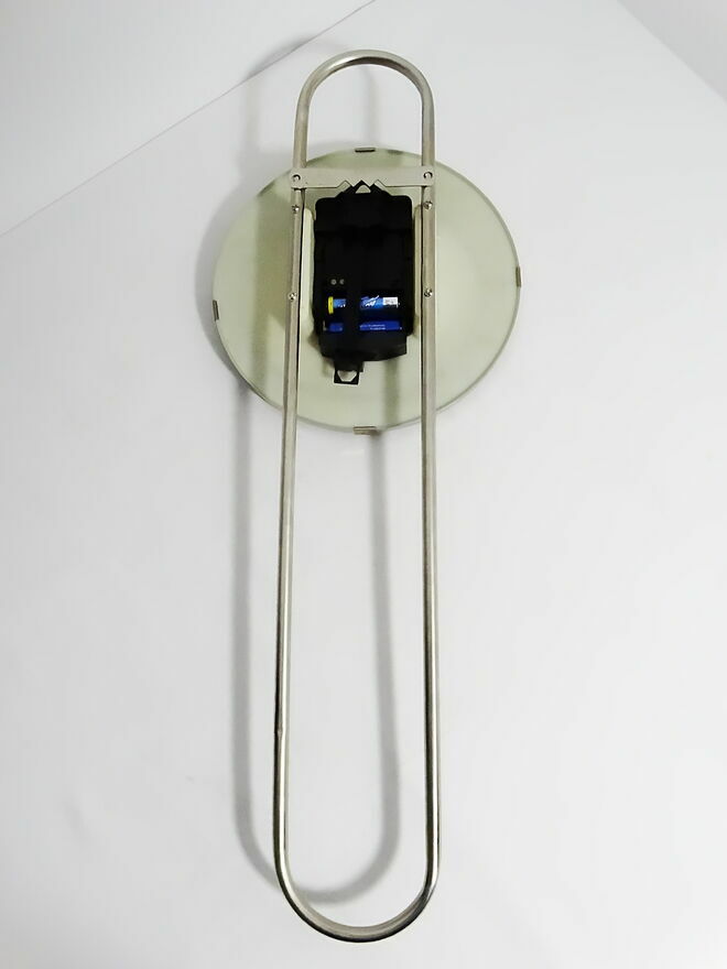Stylowy zegar ścienny z wahadłem sterowany radiowo MebusZegar w bardzo dobrym stanie wizualnym co widać na zamieszczonych zdjęciach jak również w bardzo dobrym stanie techniczny - sprawny działający zasilany dwoma bateriami typu ,,grube paluszki,, AA R6 1,5V baterie w zestawie. Zapraszam do obejrzenia sprawdzenia i oczywiście zakupu - zapraszam.