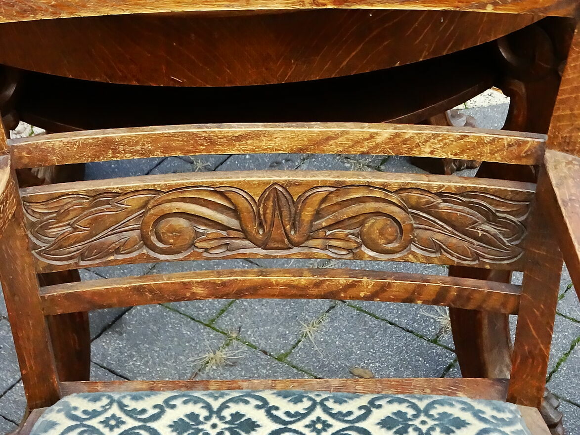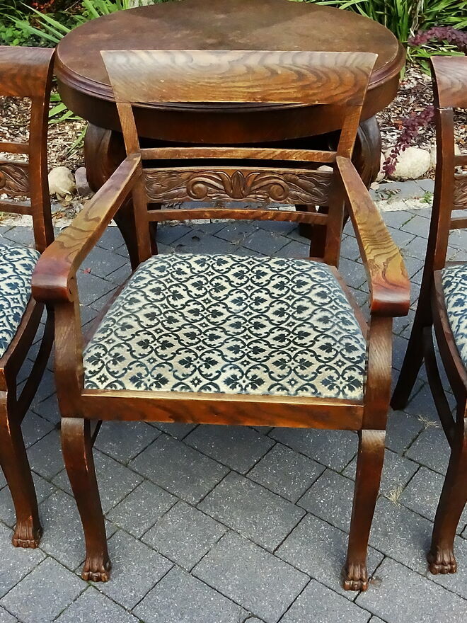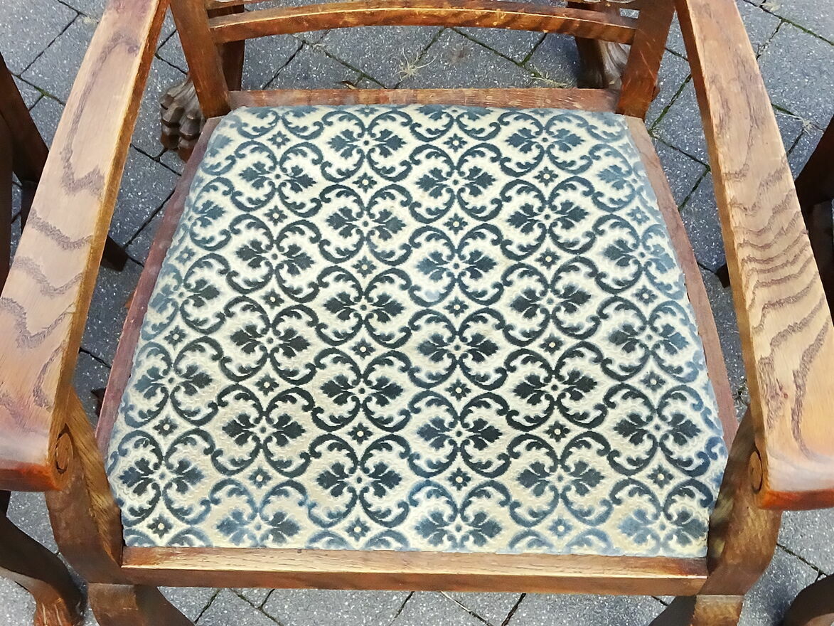 Materiał: drewno (prawdopodobnie buk lub dąb), tkanina obiciowa