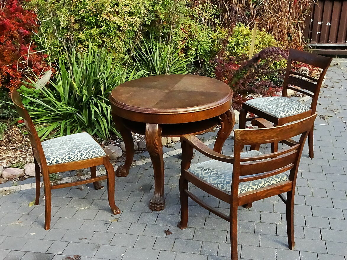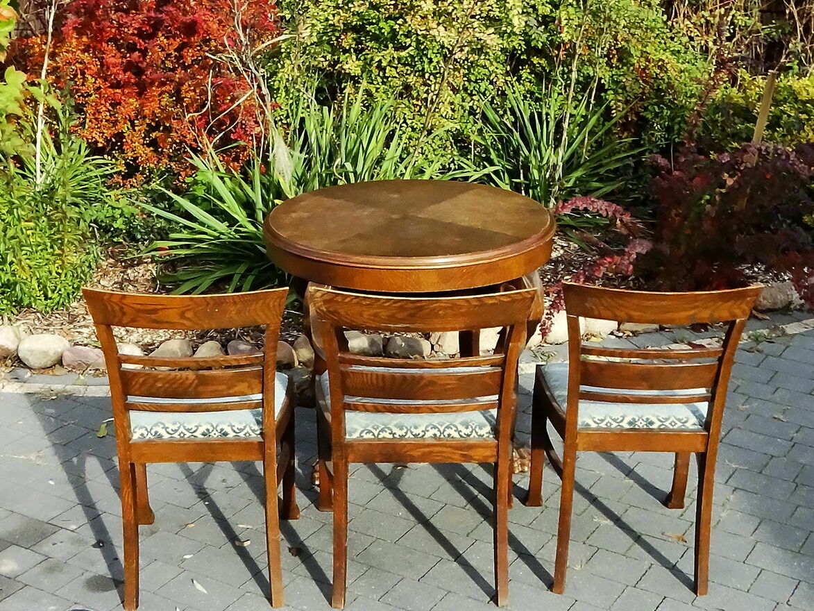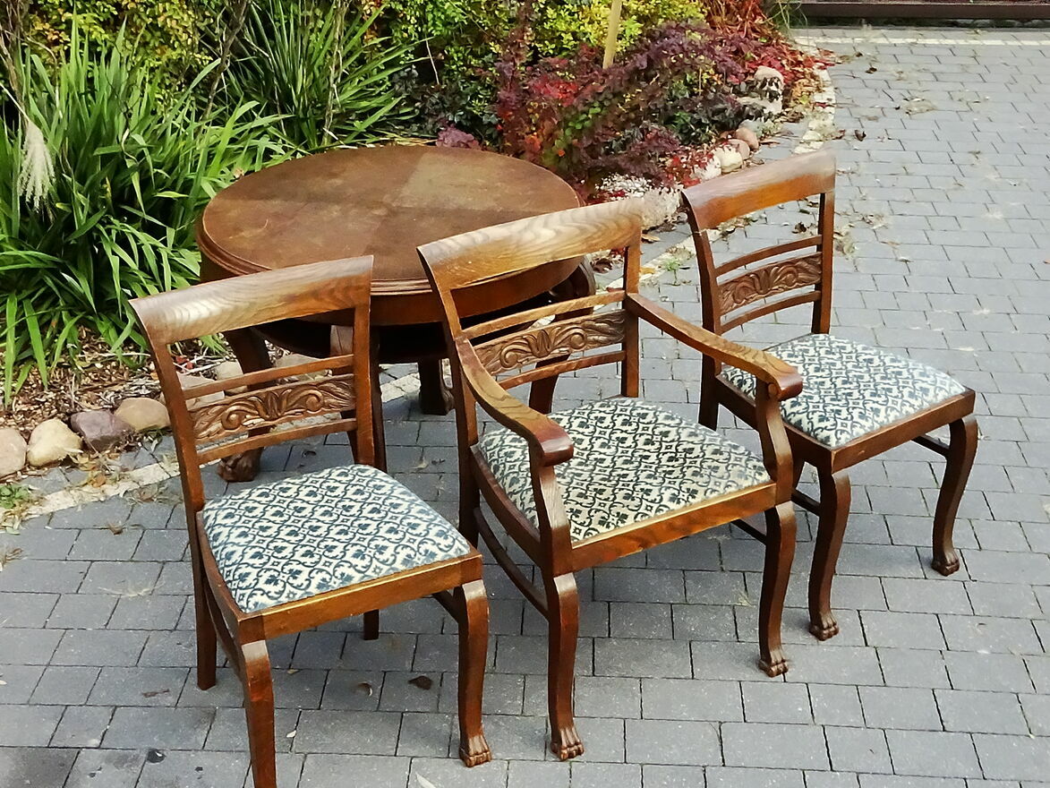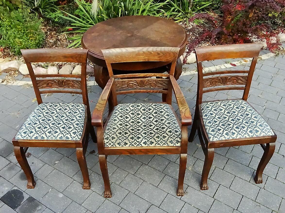 Stylowy zestaw mebli - stolik kawowy + 3 krzesła tapicerowan