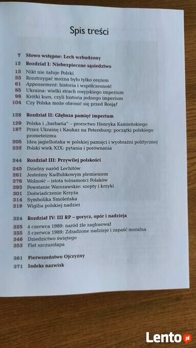 Obraz współczesnej Polski z historią w tle - odarty z wszelkiej półprawdy, narosłej przez lata komunizmu i III RP. Autor wyraźnie wskazuje na wewnętrzne oraz funkcjonujące za granicą ośrodki antypolskie. Napisana piękną polszczyzną książka zmusza do przemyśleń, do szukania narodowych, a więc chrześcijańskich korzeni. Utrwala narodową pamięć i uświadamia, jaką straszną cenę trzeba płacić za jej utratę